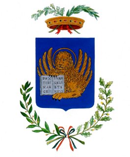 STEMMA: d'azzurro, al leone d'oro, alato e nimbato dello stesso, con la testa posta di fronte, accovacciato, tenente con le zampe anteriori avanti al petto il libro d'argento, scritto delle parole in lettere maiuscole romane di nero, PAX TIBI MARCE nella prima facciata, in quattro righe, ed EVANGELISTA MEUS nella seconda facciata, similmente in quattro righe. Ornamenti esteriori da Provincia.