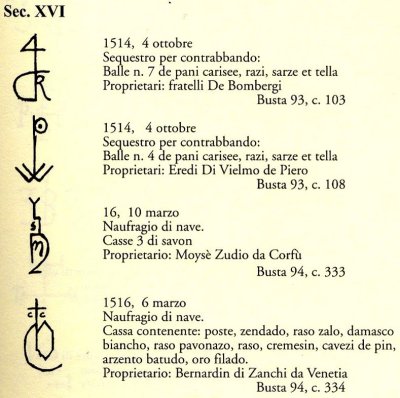 Raramente la marca portava l'indicazione della località sede del mercante. In taluni casi, tuttavia, il richiamo è abbastanza chiaro: la stella a sei punte o segno di Salomone indicava il mercante ebreo; i caratteri arabici quelli ottomani e barbareschi.