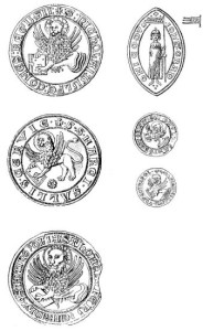 Il sigillo ricordiamo che è “elemento fondamentale dell’araldica, in particolare per quella dei primordi. Si presentava in tre caratteristiche fondamentali, con l’arme del proprietario, con la figura del proprietario a cavallo, con la figura del proprietario in trono”. 4)